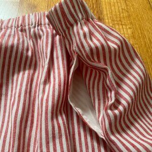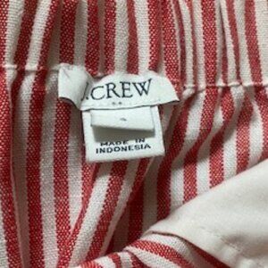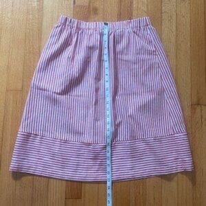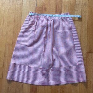 J.Crew Factory striped cotton-linen midi skirt. Red and white stripes. Vertical stripes with a band of horizontal stripes at the bottom.