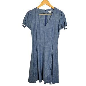 J.Crew Factory Chambray Faux Wrap Dress Blue preppy summer classic casual sz 0