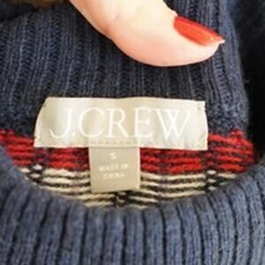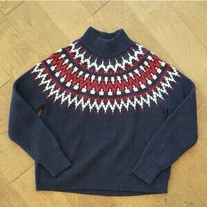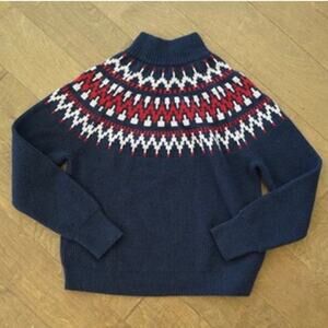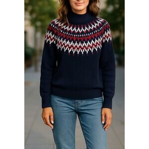 J.Crew Fair Isle Mockneck Pullover Sweater Navy Blue Womens Size Small