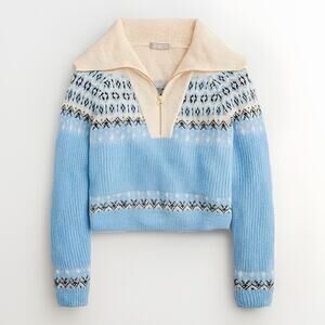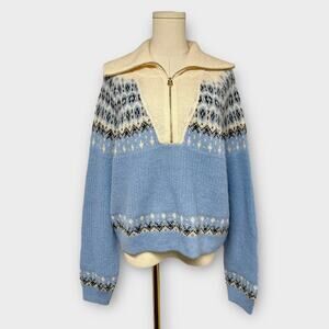 J.Crew Fair Isle Nordic Half-Zip Sweater in Brushed Yarn Alpaca Wool Size Large