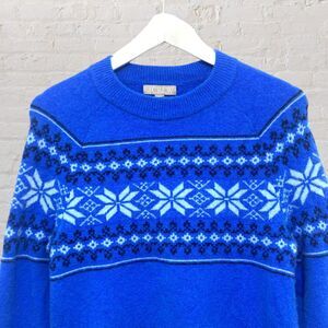 J.Crew Fair Isle Sweater XS Merino Wool Alpaca Blue Crewneck Long Sleeve