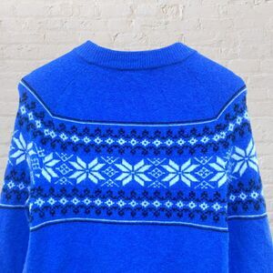 This stunning cobalt blue Fair Isle sweater is a true J.Crew classic! Features beautiful Nordic-inspired snowflake & geometric patterns in crisp white against vibrant blue. The luxurious yarn blend feels incredibly soft and cozy.