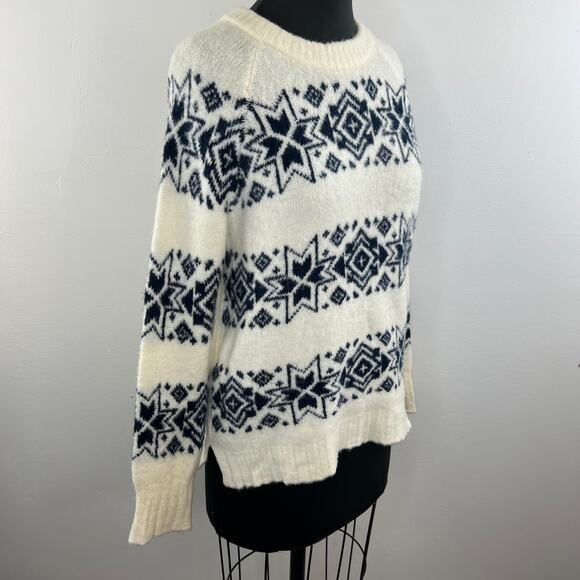 J.Crew Fair Isle White Black Crewneck Wool Blend Pullover Sweater L Large