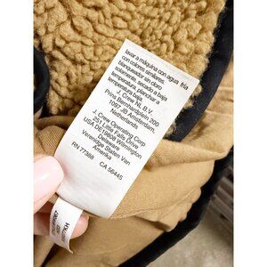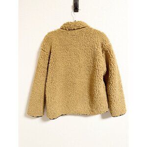 J.Crew Faux Sherpa Barn Jacket Button Up Patch Pocket Tan Black Trim Small