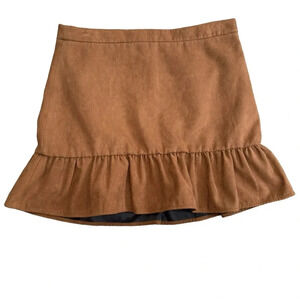 J.Crew Faux Suede Ruffle Hem Mini Short Skirt Cognac Brown Size 10