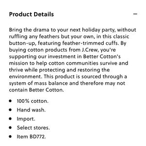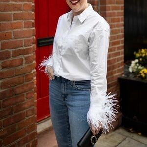 J.Crew Feather Trim Cotton Poplin Button Up Shirt With Collar White