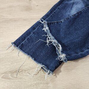Raw hem is intentionally distressed for style.