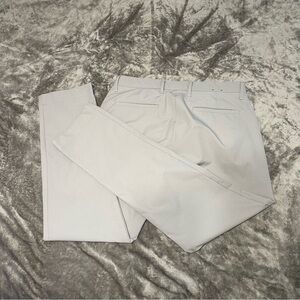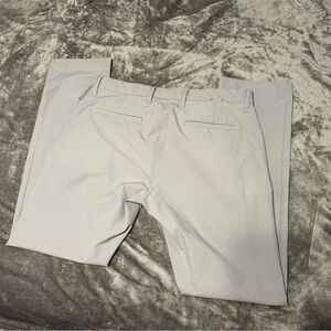 J.Crew Flex slim fit chino pants in a light gray color, men’s size 31x30. Made with lightweight polyester blend fabric for comfort and stretch. Features a button and zip closure, belt loops, side pockets, and back welt pockets. Style #AA712. Excellent condition with no visible flaws, perfect for casual or business casual wear.