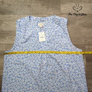 A most charming tank top from the esteemed house of J.Crew, featuring a delightful array of blue florals that dance across the fabric like wildflowers in a summer meadow. The button-front detail adds a touch of refinement to this entirely new garment, while the polyester construction ensures both comfort and elegance for the discerning modern lady.