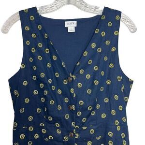 J.Crew Floral Navy V-neck Button-front Dress in Linen Blend Size 4