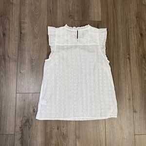 J.Crew Flutter Sleeve Cotton Clip-Dot Top WMNS M White Ruffled Semi-Sheer Blouse
