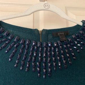 JCrew Forest Green Sweater with beading work and zipper detail in the back! In great condition with some minor piling as seen in the photos. Offers Welcome.