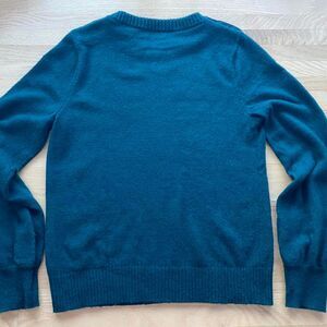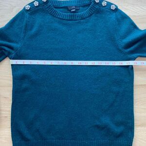 Warm and festive Christmas holiday lambswool blend sweater from J. Crew! Jeweled button embellishments on the shoulder and subtle balloon sleeve add to the quiet luxury vibe. Signs of washwear.