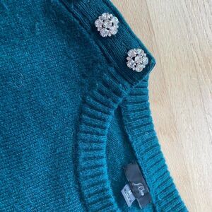 J.Crew Forest Green jeweled button Christmas Holiday Festive Lambswool Sweater M