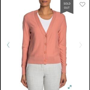 J. Crew sold out online front button solid knit cardigan. Perfect for layering casual outfits. Long sleeves, v neck, large buttons, ribbed cuffs and waist for a flattering fit. Color is a soft salmon. 100% cotton. Approximately 23.5” length. Size XXS. In excellent condition.