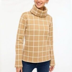 J.Crew Funnel Neck Sweater, Long Sleeve, Camel Windowpane, Size Small