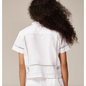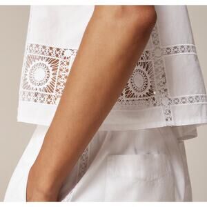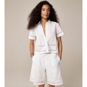 J.Crew Gamine Eyelet Trim Shirt Cotton White Short Sleeve Resort Boho US 12 NWT