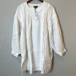 NWT Womens J.Crew Gathered Popover Dress Mini Linen Long Sleeve Beach Summer Vacation CJ500 White Medium