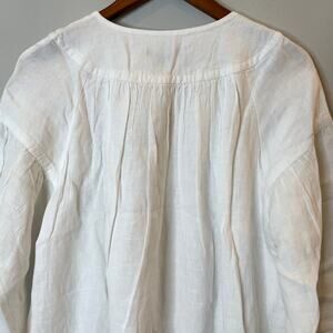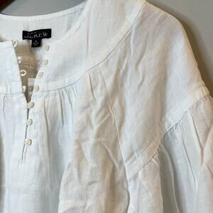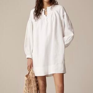 J.Crew Gathered Popover Dress Mini Linen Long Sleeve Beach Holiday CJ500 White M