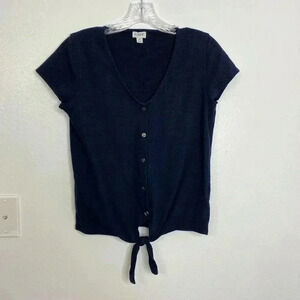 J.Crew Gauze Navy Blue Tie Button Up Top