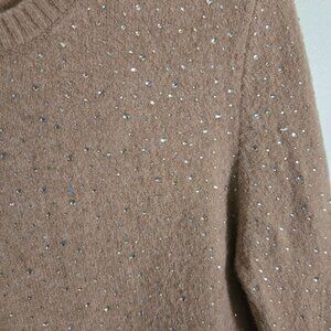 • Gorgeous Rhinestone Studded Beige Super Soft Yarn Alpaca Blend Crewneck Sweater