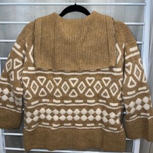 JCrew Geometric Fair Isle Tan Half/Quarter Zip Wool