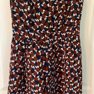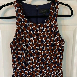 Step out in style with this J.Crew A-line dress, featuring a unique geometric print in shades of navy and maroon. The sleeveless design and fitted waist flatter the figure, while the flared skirt adds a playful touch to your movements. This dress is crafted from a soft, lightweight fabric, making it perfect for both daytime and evening wear. Pair it with a cardigan and loafers for a chic workday look, or dress it up with heels and a clutch for an evening out.