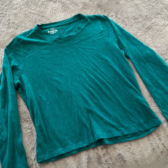 Beautiful, dark green, J Crew girlfriend tee. Measurements in pics. Long sleeve. Lightweight and very soft. Worn only once and in excellent condition. Just a little short for my torso so, my loss is your gain.