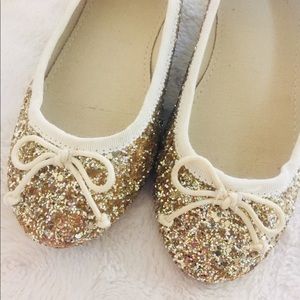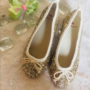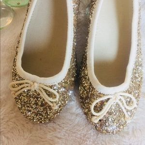 JCrew Girls Gold/Silver Sequins Dress Ballet Flats. These are adorable with cream tights and a Holiday dress or with black leggings to dress up any outfit during your holiday festivities. These were very lightly worn as they were purchased too small and we purchased a size larger now also for sale.