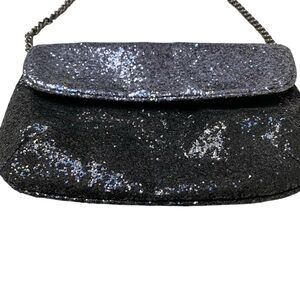 J.Crew Glitter Sequin Crossbody Clutch Bag Silver Black Chain Strap Style #57106
