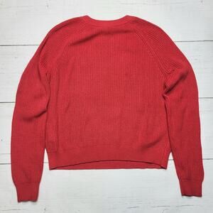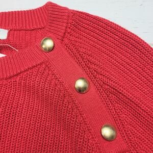 J.Crew Gold Button Raglan Crewneck Sweater Red Ribbed Cotton Blend Cozy XS