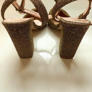 J.Crew Gold Glitter Block Heel Sandals – Harlow Ankle Strap Size 8