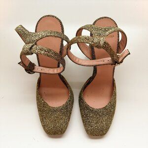 J.Crew Gold Glitter Block Heel Pumps – Harlow Ankle Strap Size 8