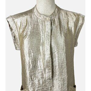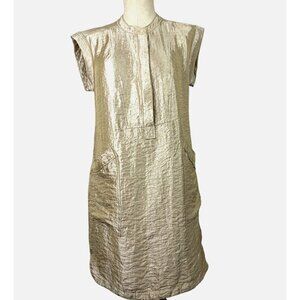 J.Crew Gold Lamé Cap Sleeve Shirt Dress Size 2 Style C9227