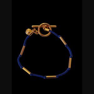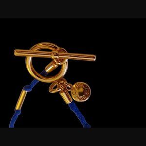 J.Crew Gold Tone Blue Knotted Cord Size 6.5" Long Toggle Clasp Bracelet