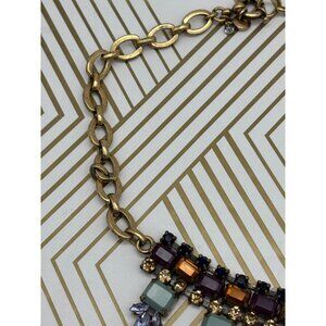 J.Crew Gold Tone, Blue, Purple & Amber Color Collar Crystal Statement Necklace