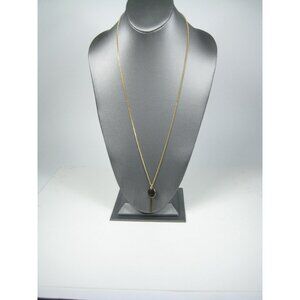 J.Crew Gold Tone Necklace Circle Bar Pendant Chain Modern Signed Geometric Charm