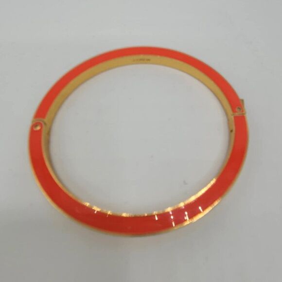 J Crew Gold Tone Orange Enamel Hinged Bangle Bracelet