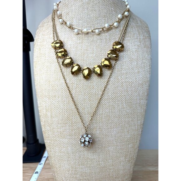 The J.Crew necklace set combines gold-tone, pearls, and rhinestones for an elevated aesthetic. Suitable for mixing, matching, or layering elegantly.