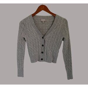 J.Crew Gray Cashmere Cable-Knit V-Neck Button-Up Cardigan Sweater S