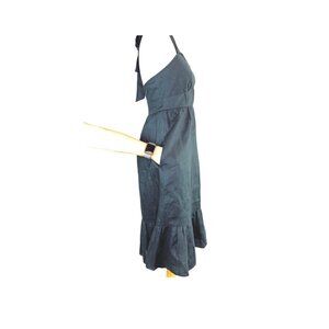 This J.Crew halter dress, crafted from premium linen, exudes a timeless elegance reminiscent of a bygone era. Its classic navy hue and ruffled hem add a touch of vintage charm. The halter design and smocked back ensure a comfortable fit, making it a versatile addition to any wardrobe.