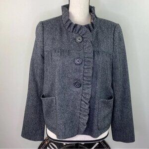 J.Crew Gray Herringbone Ruffle collar Blazer jacket size 6