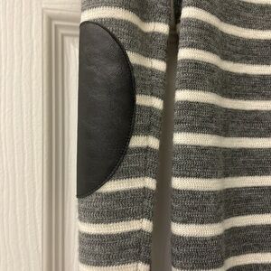 J.Crew Gray & White Striped Merino Wool Sweater – Leather Elbow Patches