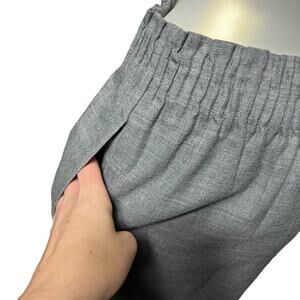 Elevate your professional wardrobe with this sophisticated J.Crew pencil skirt. Crafted from a luxurious wool-blend fabric in a versatile heather gray, this midi-length skirt features a comfortable elastic waistband and convenient side pockets. The fabric composition includes 40% wool, 29% polyester, 28% viscose, and 3% elastane, creating a perfect balance of structure and comfort. The skirt has a modern, streamlined silhouette that transitions seamlessly from office to evening. The high-quality construction and timeless design make this piece a wardrobe staple for any season. The elastic waist offers flexible sizing and comfortable wear throughout the day. Currently in excellent pre-owned condition with no notable flaws or wear.