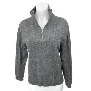 J.Crew Gray Wool Knit Long Sleeve 1/4 Zip High Neck Pullover Sweater Top Size L