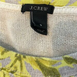 Stylish J. Crew sweatshirt with vibrant yellow floral pattern on a gray background. Comfortable and chic.