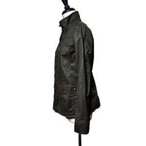 Made of 100% cotton and is the quintessential cool girl jacket. It has military inspired pockets and snaps, standing collar, snap front with hidden zipper closure, adjustable waist tabs, chest pockets, and hip pockets. Laying flat measures 19" from pit to pit, 25" shoulder to the hem, and 24" sleeves. This jacket has a polished cotton texture. Be sure to check out all of my other J. Crew listings.