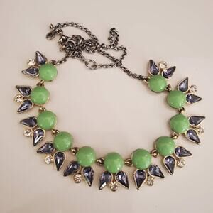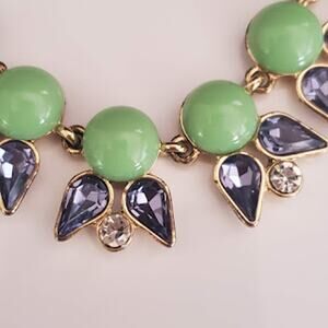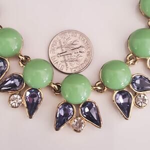 J.Crew Green and Purple Crystal Floral Statement Necklace Gold Tone
