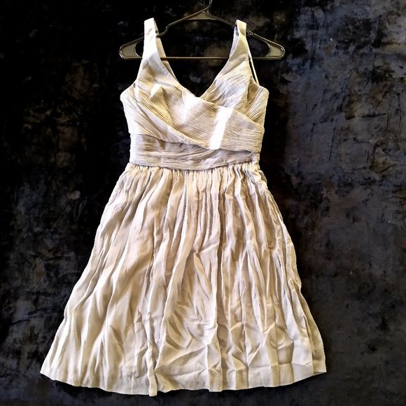 100% Silk, V-neck draped bodice "Heidi" cocktail/bridesmaid dress. Wrinkled but clean (worn once, was then dry-cleaned and stored)!