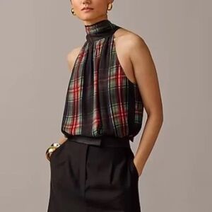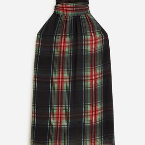J.Crew Halter Top Blouse with Necktie in Stewart Tartan Chiffon Blend Black, Red, Green